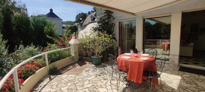 Втората спалня също се възползва от частна тераса с красива гледка към Лоара и острова; можете да се отпуснете безопасно там с шезлонгите, оставени на ваше разположение.