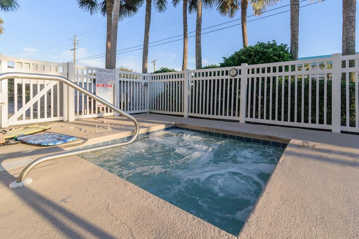 Захарен пясъчен плаж! Ъглово помещение с широк изглед от балкона. На няколко крачки от плажа. 2 БЕЗПЛАТНИ паркоместа. Басейн и хидромасажна вана. Пералня и сушилня в помещение с стартерни капсули. 3 големи плоскоекранни телевизора с кабелна телевизия. Безплатен Wi - Fi. Лесен достъп без ключ. 2 суита с двойно легло king size. Една самостоятелна баня. 2 - ри кралски майстор с обща баня. Кубче за двуетажно легло в коридора. Кухнята е напълно заредена със съдове за готвене и прибори за хранене. Keurig, кафе машина, чайник и стартерни капсули. Грил. Трябва да сте навършили 25 години, освен ако не сте на действителна военна служба.