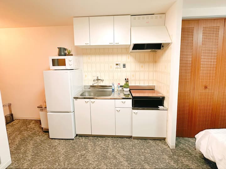 [Dragon Cat B&B – Umeda 202] 5 минути пеша от станция Tenjinbashi-Suji Rokuchome/4 минути с електрически влак до Източен Umeda/стая с две големи легла за до 4 души