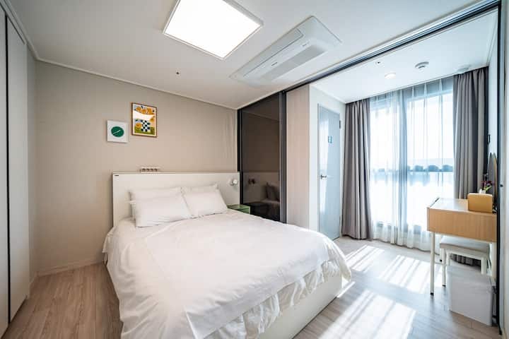 Намира се точно пред плажния парк, така че е добре да се разходите и да се насладите на спокойното море Йосу.