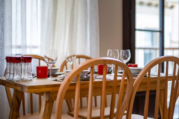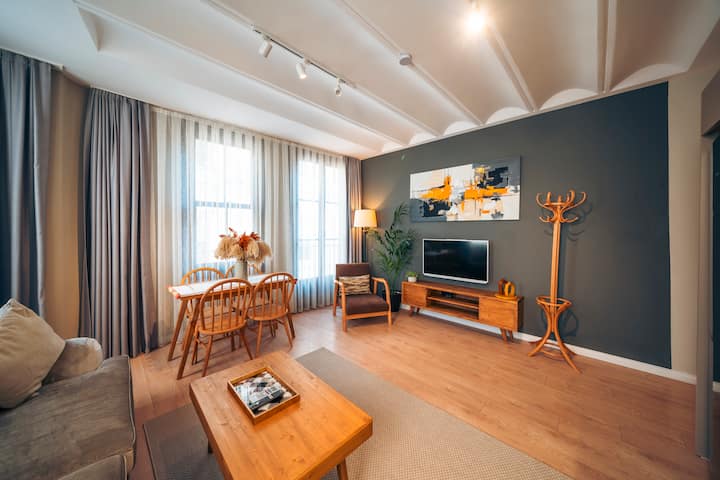 -**Всекидневна :** Отпуснете се в стилната всекидневна, обзаведена с удобен диван, плоскоекранен телевизор и съвременен декор. Идеалното място да се отпуснете след ден, прекаран в разглеждане на града.