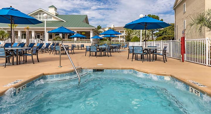 Има много интересни неща в Harbour Lights, без дори да се осмелите да стигнете до близкия Гранд Странд - местният термин за над 60 - километровия плаж, който се простира от Мъртъл Бийч почти до Чарлстън. Карайте колело или се разходете по живописни криволичещи пътеки, покрай езера, където рибарите могат да хвърлят опашка. Вземете поплавък и работете върху тена си, докато се плъзгате пасивно по мързеливата река на курорта. Насладете се на освежаващо потапяне в безкрайния басейн и се освежете в снек бара край басейна след това или се насладете на успокояваща хидромасажна вана. Има дори фонтани с гъби и детски басейн само за децата да се насладят! Курортът разполага и с програма за дейности за деца, която ще им помогне да се забавляват.