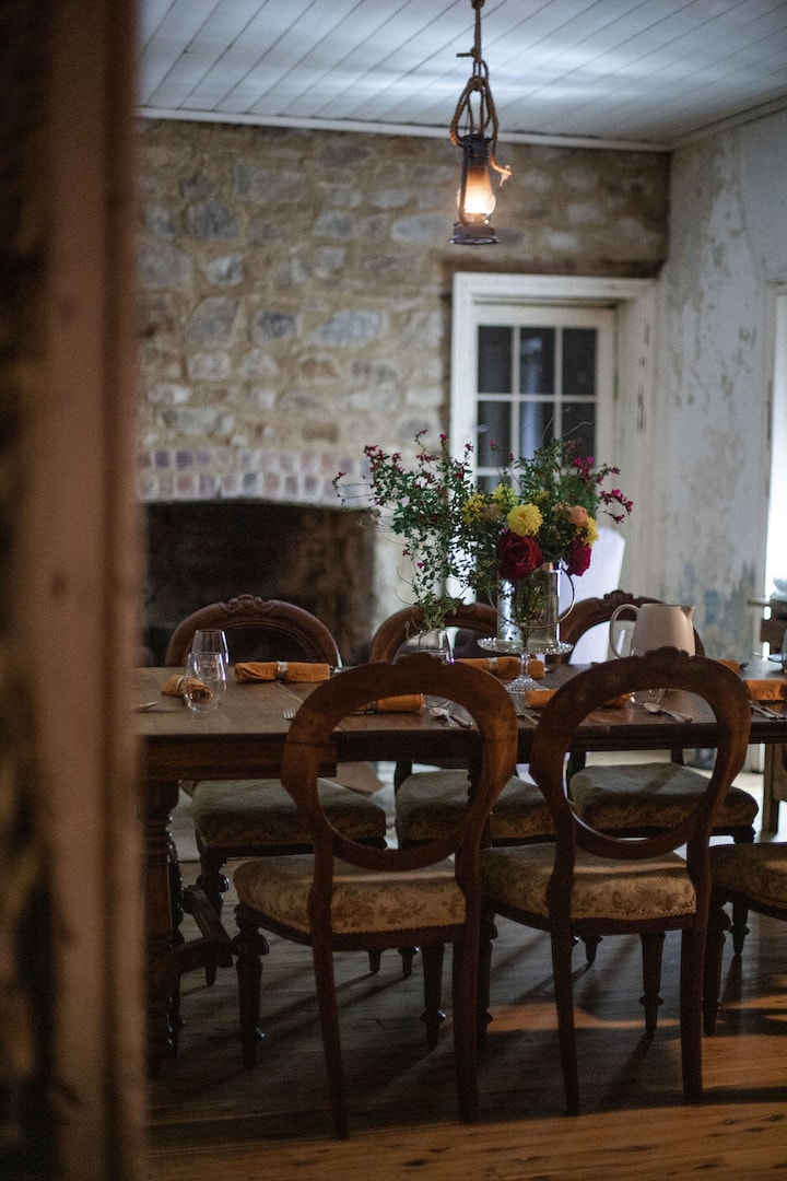 Rosewood Cottage is your communal space for warming up by the fire, to retreat to when its raining, perusing the library and enjoying meals- elevated homestyle food prepared by us.