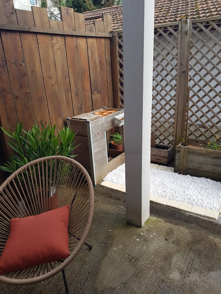 Има и допълнителна кофа за боклук за стъкло (можете да я оставите на терасата, когато излезете, аз ще се погрижа за нея, в противен случай ще трябва да се разходите малко близо до железопътната линия).