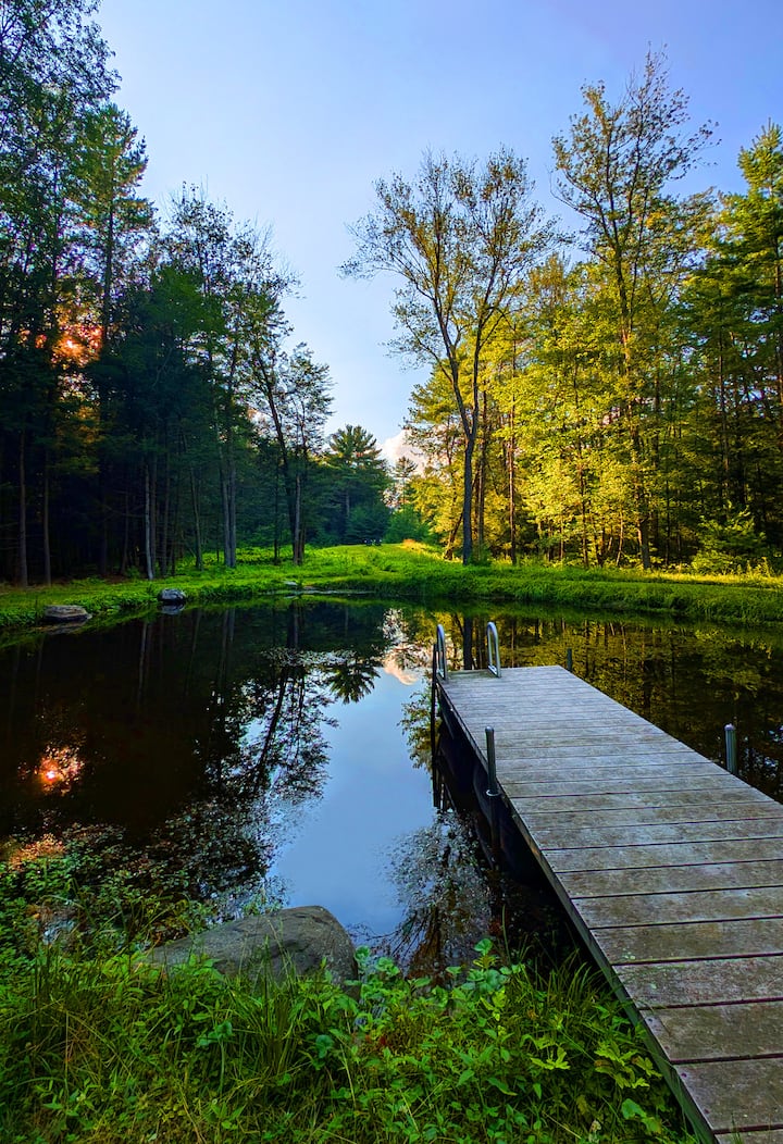 Модерна ферма | 7 акра гора Катскил с езеро