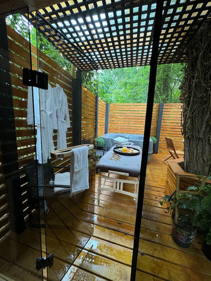Отпуснете се с удобствата сауна и хидромасажна вана Jaccuzi.