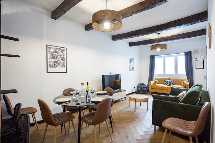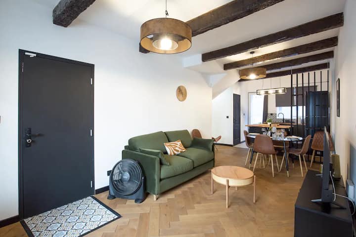 Апартаментът ни е удобно разположен за опознаване на града. На пешеходно разстояние от обществения транспорт и жп гарата, можете лесно да стигнете до всички основни забележителности на Марсилия! Ще бъдете точно до известния булевард „Кур Жулиен“ на няколко минути пеша.