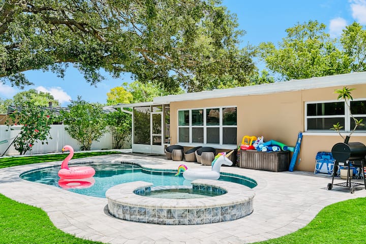 Плувайте или се отпуснете в хидромасажната вана на този дом.