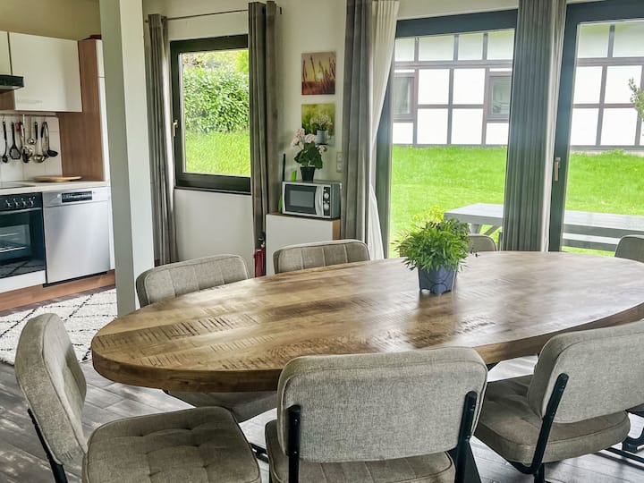 Ваканционно селище „Франкенау “, заобиколено от дървета и ливади. Извън курорта, на 2 км от центъра на Франкенау, в квартал Nationalpark Kellerwald, на склон, на 28 км от езерото. За общо ползване: собственост в естествено състояние, езеро. В комплекса: ресторант с телевизор, павилион, слънчева тераса. Доставка на хляб. Хранителен магазин 8 км, ресторант 2 км, пекарна 2 км, наем на велосипеди 15 км, автобусна спирка 400 м, жп гара „Франкенберг“ 15 км, открит плувен басейн 6 км, закрит плувен басейн 15 км, термални бани „Бад Вилунген-Райнхардсхаузен“ 20 км, езеро за къпане 12 км. Голф игрище (18 дупки) 25 км, тенис, закрит тенис център 400 м, пешеходни пътеки от къщата 100 м, велосипедна алея 500 м, гондолен лифт 27 км, възможности за риболов 700 м. Забележителности наблизо: KellerwaldUhr 500 м, Schloss Waldeck 27 км. Лесно можете да стигнете до известни ски региони: Винтерберг 45 км, Уилинген 50 км. До добре познатите езера се стига лесно: Едерзе - Херцхаузен на 13 км. Пешеходни пътеки: Национален парк Келервалд 500 м. Моля, обърнете внимание: подходящо за семейства. Кварталът е много чувствителен към шума. Очаква се тишина и добро поведение. До някои от ваканционните домове може да се стигне чрез стъпки. На входа на парка има бистро/кафене със слънчева тераса, неделна закуска на шведска маса, детско кино, футбол на маса (ограничено работно време извън сезона). Има и възможност за използване на пералня и сушилня срещу заплащане.