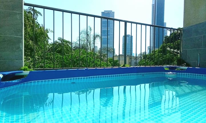 Самостоятелен външен басейн – предлага се сезонно, отворено денонощно, играчки за басейн, на покрива