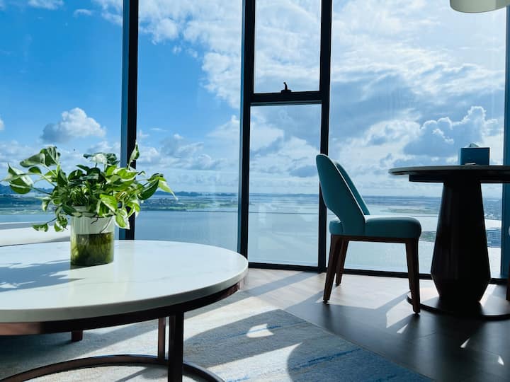 Представителска стая с изглед към залива, с голямо двойно легло/самостоятелен балкон/висок етаж
