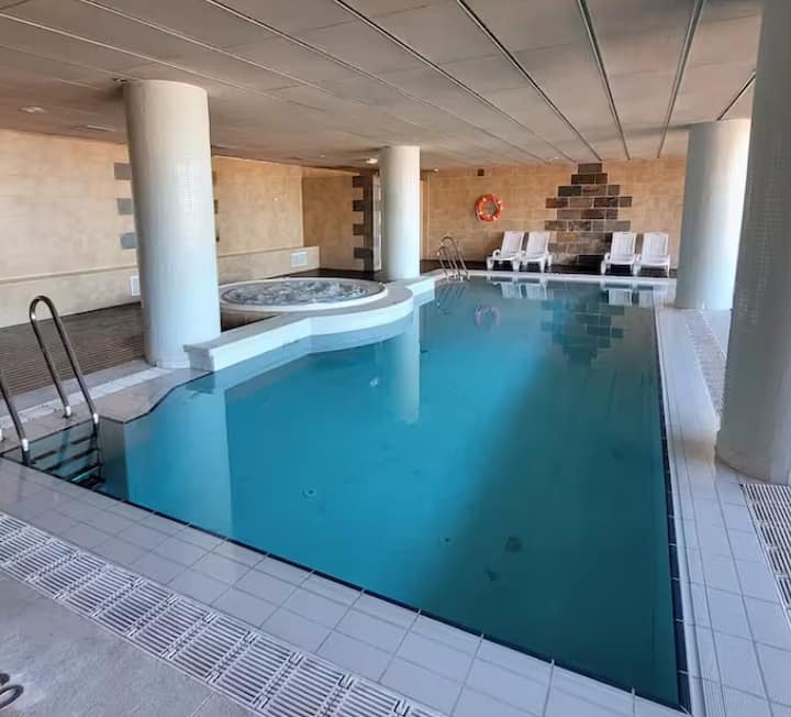 Общ закрит басейн – предлага се сезонно, отворено в определени часове, покривало за басейн, с подгряване на водата