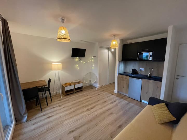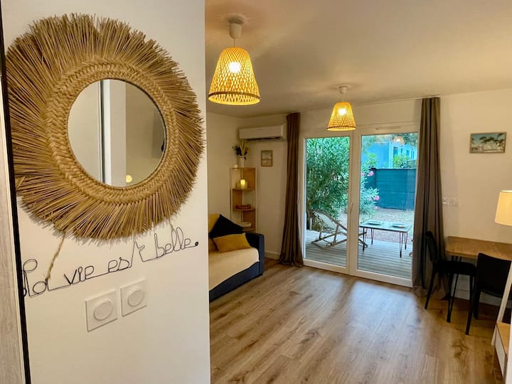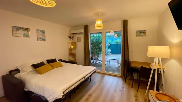 Уютно студио с басейн в Кала Роса, на 5 минути от плажовете