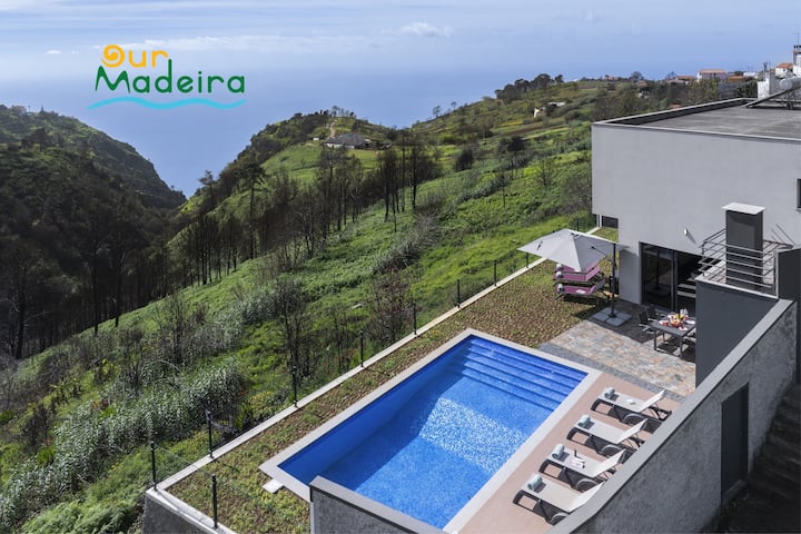 Разположена в спокойната природа с красива открита панорамна гледка към зелените хълмове и морето, Vista Serena е много просторна климатизирана вила с 5 спални в Мадейра с превъзходна зона за отдих, която включва стая за игри, стая за барбекю и дълга предна градина с прекрасен плувен басейн, идеалното място за общуване през деня и вечерта.