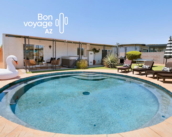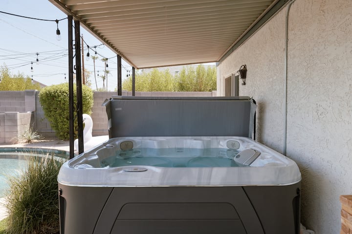Напълно ограденият заден двор е подходящ за по-хладния сезон в Скотсдейл, предлагайки уединено място, където да се насладите на свежия пустинен въздух. При поискване се предлага отопляем басейн, а хидромасажната вана остава отворена през цялата година за топли вечерни потапяния. Трапезарията на открито, шезлонгите, барбекюто и удобните места за сядане на вътрешния двор създават спокойна обстановка за бавни следобеди. Пинг понг и корнхол добавят опции за забавление между почивките, а отделният вход и обилните мебели на открито улесняват насладата от пространството в собственото ви темпо.