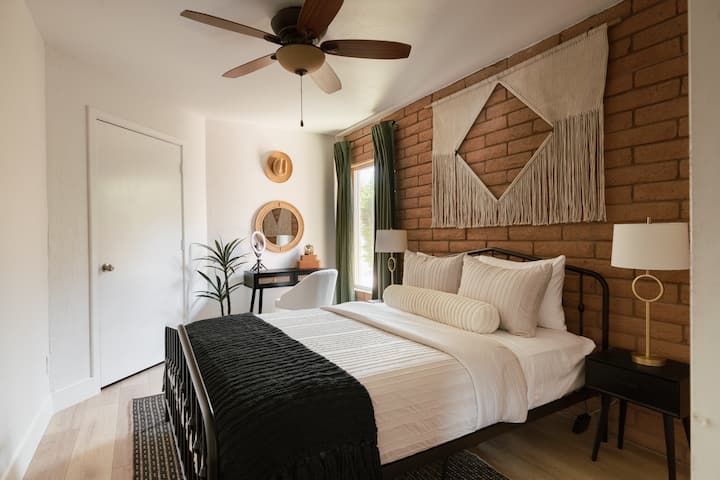Разположен в Скотсдейл, домът предлага спокойна сезонна база близо до местни удобства и дейности на открито. Независимо дали сте на краткосрочен престой, или на по-дълъг зимен отдих, този дом, подходящ за домашни любимци, осигурява спокойна и удобна обстановка, за да се отпуснете и да се насладите на времето в пустинята.