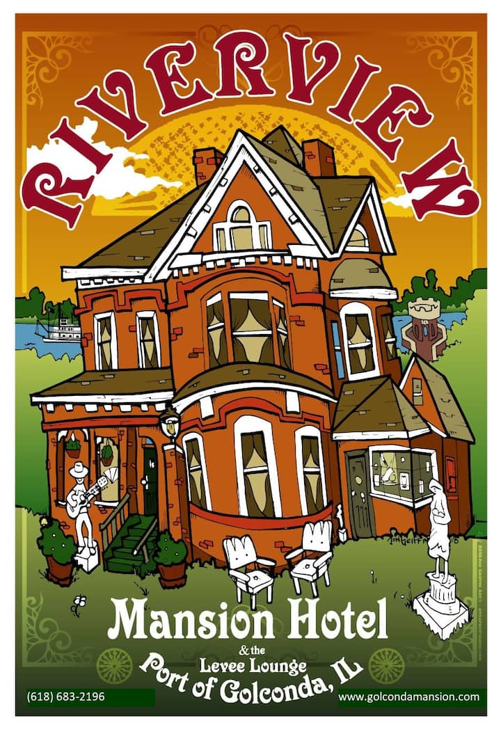 Хотел Riverview Mansion of Golconda е хотел с пълно обслужване, който работи целогодишно. В допълнение към най - добрите места за настаняване във викториански стил в Южен Илинойс, има и салон, който предлага най - добрата селекция от местни вина, както и ресторант. Хотелът е отворен целогодишно с предварителни резервации. Приемат се всички основни кредитни карти. Levee Lounge обслужва гости на хотела, а също така е отворен за обществеността през фестивалните уикенди и за специални събития. Ресторантът споделя същата заетост като салона и ще сервира специален избор от пици, както и уникално меню за тапас.
