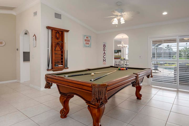 Лагуана е красив, отворен ваканционен дом с три спални и две бани с билярдна маса, която е централно разположена в квартал Upper SW Cape Coral на сладководен канал.