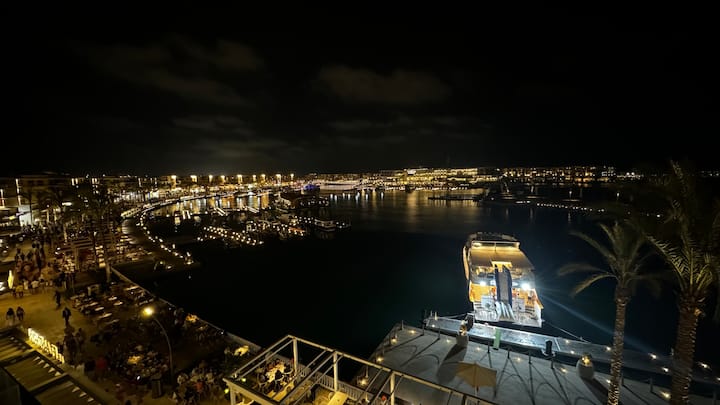Самостоятелният вътрешен двор е с изглед към яхтеното пристанище и е напълно обзаведен за живот на открито. Включва комплект за сядане на открито (диван, стол и масичка за кафе), маса за хранене с 4 стола и 8 допълнителни подвижни стола, което го прави идеален за почивка, хранене или събиране със семейство и приятели.