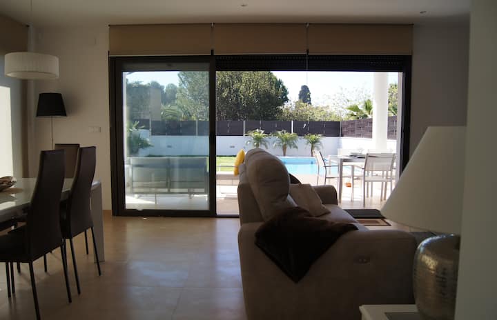 Нова дизайнерска къща с басейн на плажа - Wi-Fi