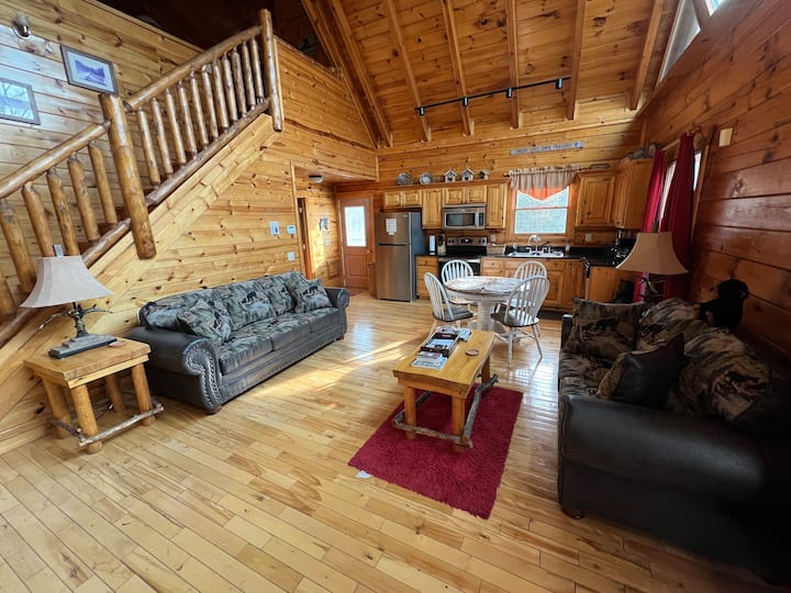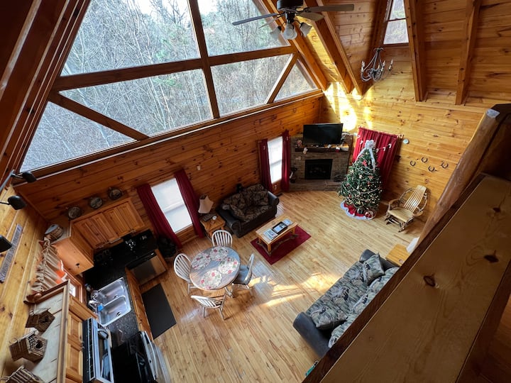 Breezy Woods Cabin е идеалният избор за тиха и спокойна почивка. Този красив дървен дом е уединен в сърцето на природата и е заобиколен от зеленина за оптимално уединение. Основната спалня е по - голяма от обикновено и включва ниша със спа вана. Всекидневната е светла, със сводест таван и големи прозорци със западно изложение. С дървени подове, много прозорци, катедрални тавани, естествено уединение и много други, позволете на Breezy Woods Cabin да бъде вашето ваканционно бягство!