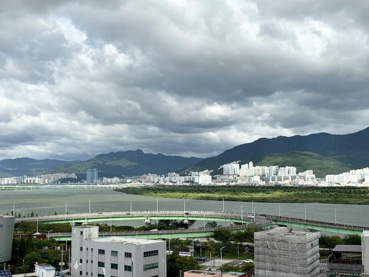 апартамент със спиращ дъха изглед към реката близо до летището
