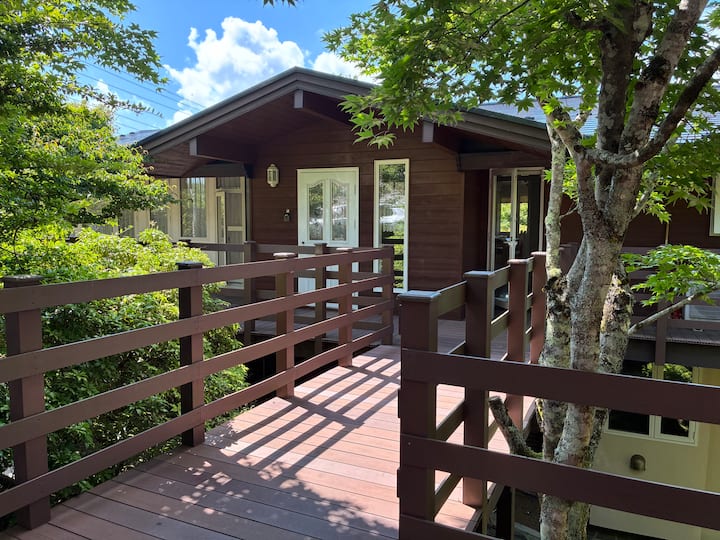Престой в планинско езеро със сауна, наслаждаваща се на красива градина и изглед към планината Фуджи