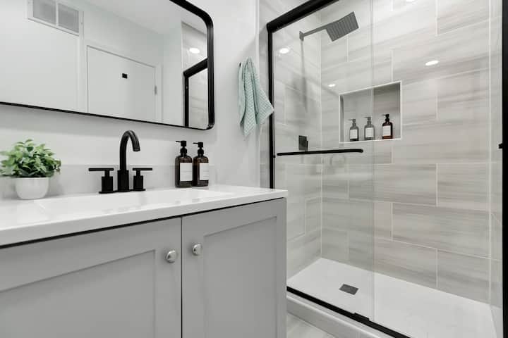 Ново 2 спални с 3 големи двойни легла, вътрешен двор, барбекю (C)