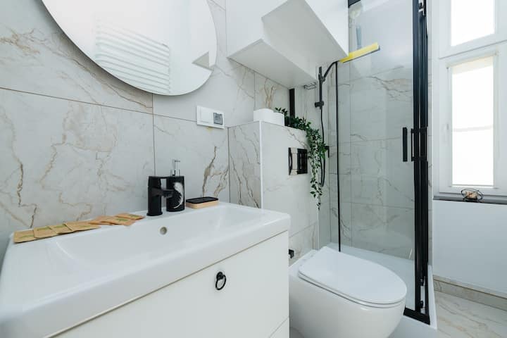 Апартаментът е напълно оборудван с всичко необходимо за комфортен престой. Кухнята разполага с всичко необходимо, включително съдомиялна машина, а банята е заредена с тоалетни принадлежности и чисти кърпи. Насладете се на релаксираща вечер с бърз Wi - Fi и смарт телевизор или се възползвайте от спокойната гледка към вътрешния двор от прозореца си. За допълнително удобство предоставяме и безплатно кафе и чай и можем да издаваме фактури по ДДС при поискване.