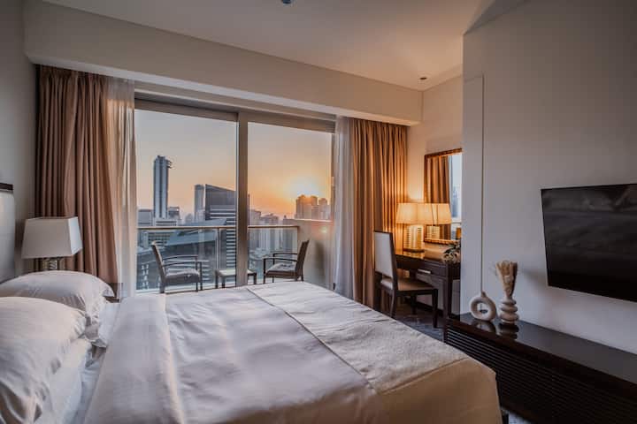 Добре дошли във вашия стилен дом далеч от дома в яхтеното пристанище на Дубай! Този красиво обзаведен апартамент съчетава модерна елегантност с невероятни гледки към яхтеното пристанище, идеални за релаксираща почивка. Насладете се на сутрешно кафе на балкона или вечерно плуване в инфинити басейна на сградата.