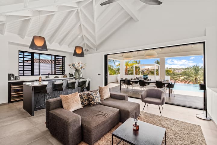 С 5 луксозни апартамента и вашия частен инфинити басейн, тази модерна вила предлага върхът на комфорта и стила, за да се насладите на уникално луксозно карибско изживяване на открито и закрито.