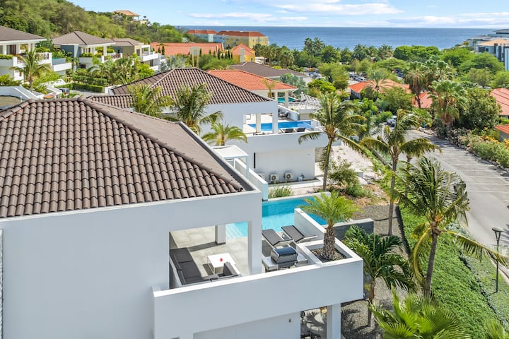 Отпуснете се в тази красива нова луксозна вила в известния курорт Blue Bay в Кюрасао, само на 3 минути пеша от девствения и мек бял пясък на плажа Blue Bay.