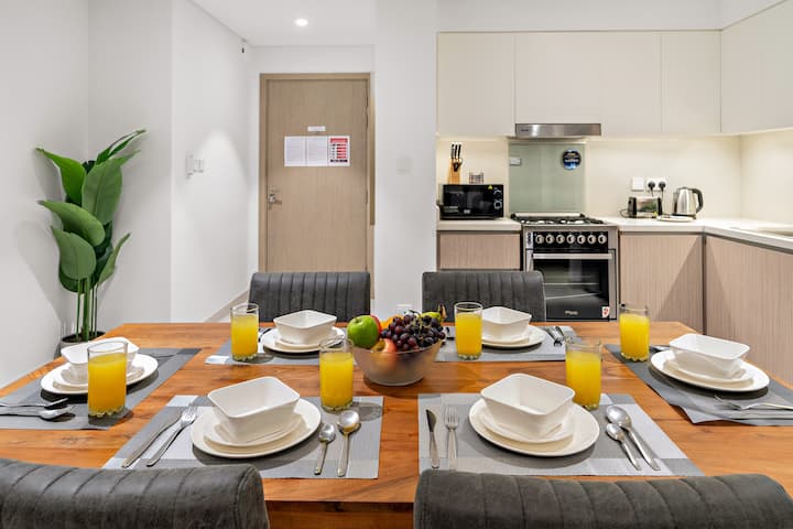Луксозен апартамент с 2 спални, басейн, фитнес зала, ресторанти на пешеходно разстояние