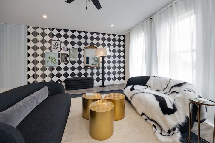 Добре дошли във Vintage Couture – елегантен 3 - етажен прилепен дом, идеално разположен до оживения квартал „Нации “. Само на минути от Бродуей, университета Вандербилт, парка Centennial и множество 5 - звездни заведения за хранене и развлечения, тази резиденция съчетава стил, лукс и удобство. Украсен с завладяващ декор, вдъхновен от модата, този зашеметяващ дом предлага шикозно и запомнящо се място за отдих в сърцето на Мюзик Сити.