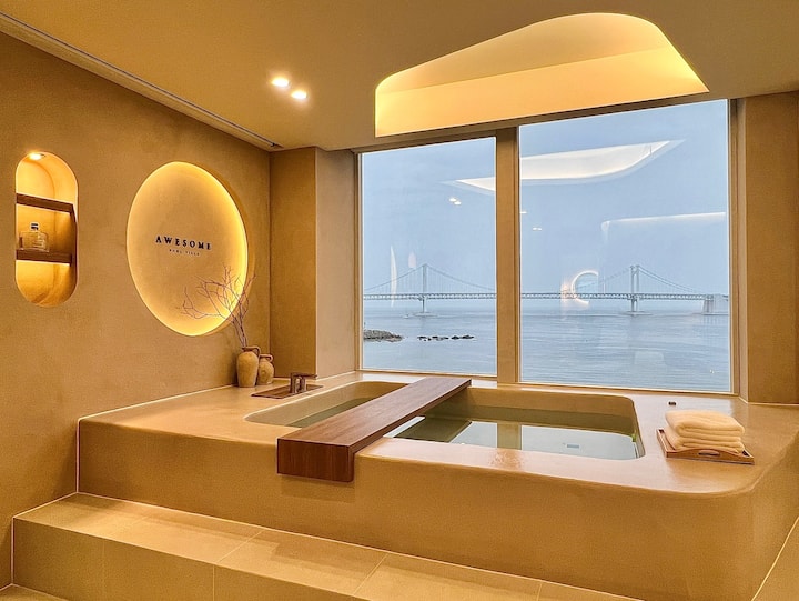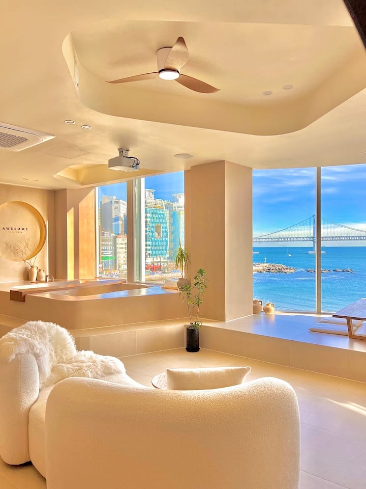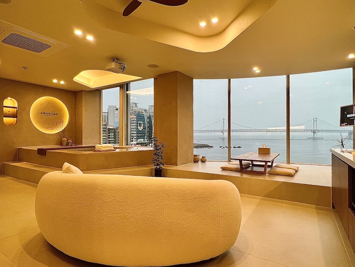 A-[Пълен изглед към морето/на 3 секунди от плажа] Гванан Асум романтично място за настаняване (Gwangan_Awesome)
