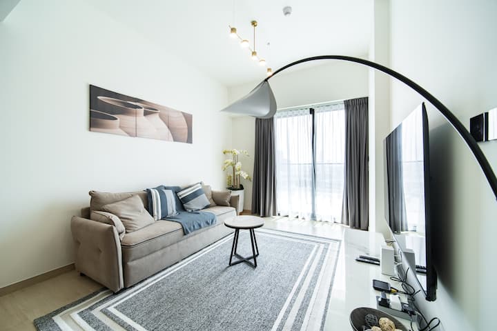 Този новообзаведен 1BR на 9 - ия етаж предлага 62 кв. м пространство, бърз Wi - Fi, 65 - инчов смарт телевизор, балкон и безплатно бебешко оборудване.