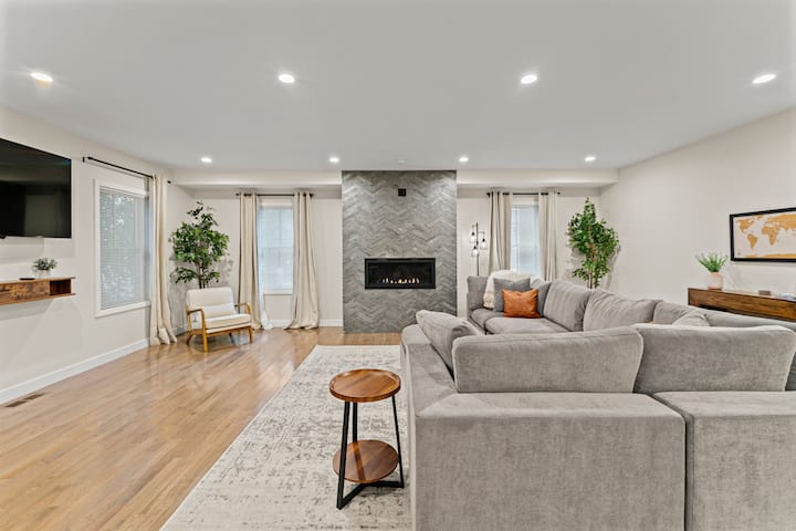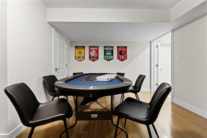 Само стъпки (само 0,17 мили) до Union Station Green Line, достъп до Харвард + Бостън, но сгушен в тих квартал. Уютен модерен + МНОГО просторен дом в Сомървил, Масачузетс. Включено е 1 БЕЗПЛАТНО покрито място за паркиране. Достъп до всичките 3 етажа + залата за покер в мазето + игри! Цялото помещение/удобства, които бихте могли да поискате!