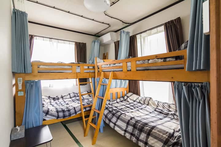 Отнема около 30 минути с кола от Кавагучико и на около 15 минути от Исава Онсен.За да намалим малко тежестта върху вас, ние сме безплатни до и от гара Кавагучико или гара Исава Онсен.Може да е малко неудобно, защото е далеч от центъра на града, но бъдете сигурни, че ще осигурим подкрепа, за да направим престоя ви удобен.Освен това има автобусна спирка до 5 - та гара на езерото Кавагучи и планината. Фуджи на около 1 минута пеша от странноприемницата.Моля, използвайте го по всякакъв начин.