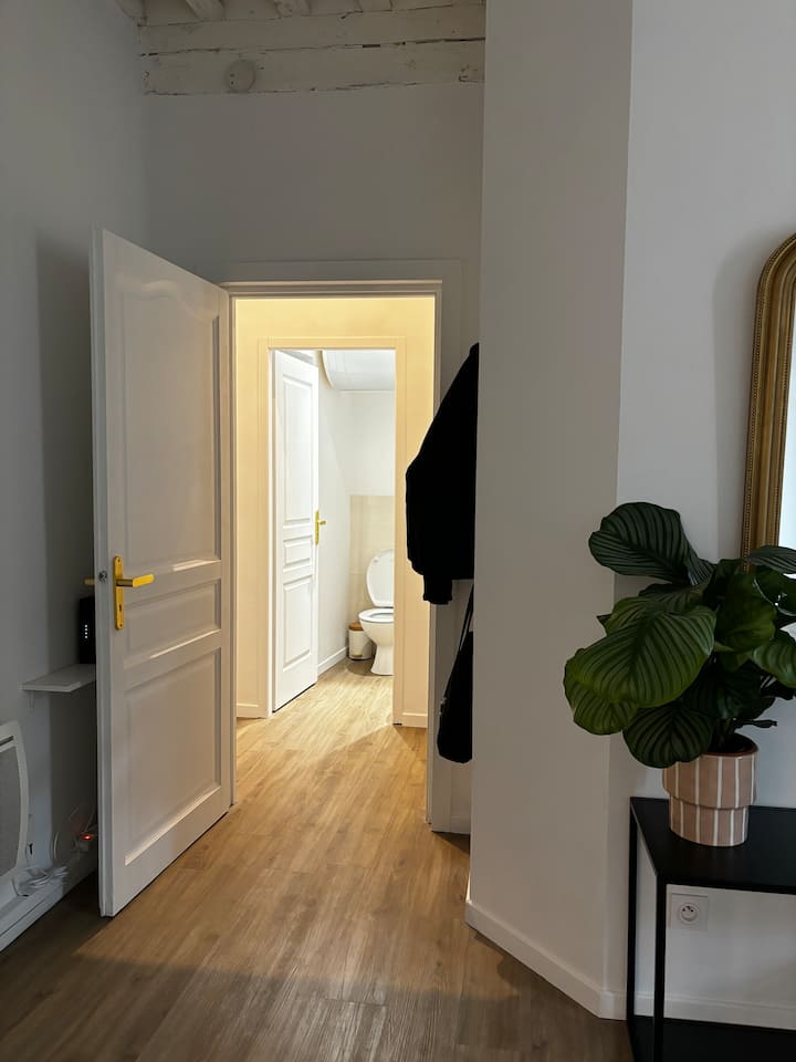 Тръгнахме да купим апартамент, за да го направим уникално място. Веднага щом пристигнахме във фоайето на тази сграда, се влюбихме в нейния характер и елегантност. Сами ремонтирахме всичко със страст, включително ремонтиране на стена, всички пребоядисани, създадени и монтирани кухня, всички обзаведени и декорирани, за да създадем топло, удобно и внимателно декорирано пространство, което да ви посрещне. ✨