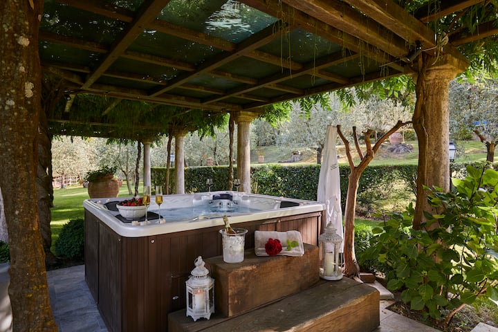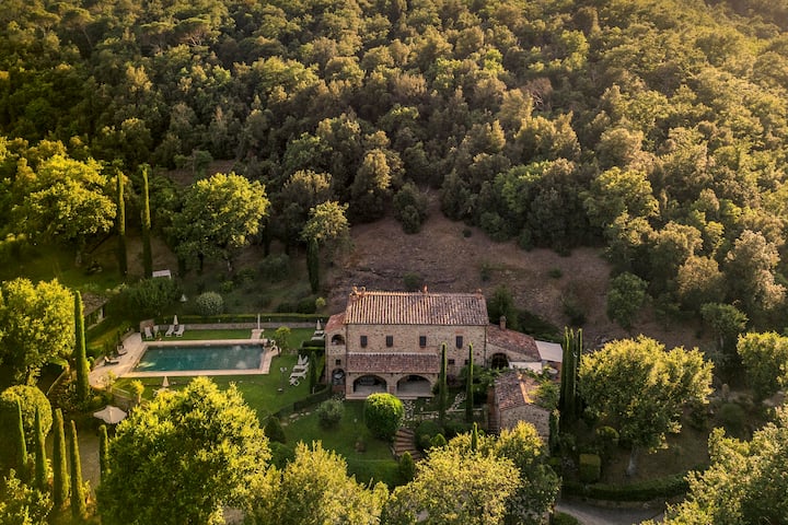 Стара тосканска ферма със самостоятелен басейн и хидромасажна вана на открито, разположена в сърцето на Валдичиана, в южната част на Тоскана. Може да приюти до 15 души, има 7 спални и 5 бани.