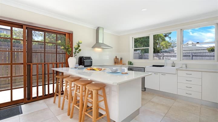 Добре дошли в Gillian – подходящ за домашни любимци, климатик, смарт телевизор, неограничен Wi - Fi, съдомиялна машина, кафемашина Delonghi Nespresso, напълно оборудвана кухня, душове с дъждовна глава, вана за крака с нокти, просторна външна трапезария, спално бельо, пералня, душ на открито, паркинг извън улицата.