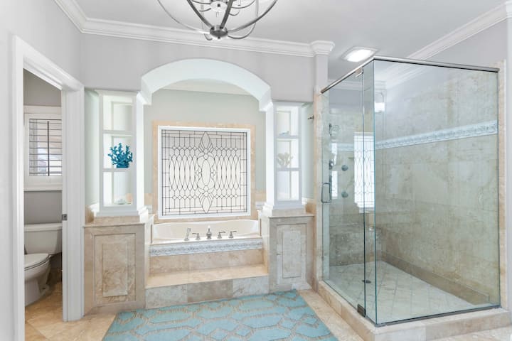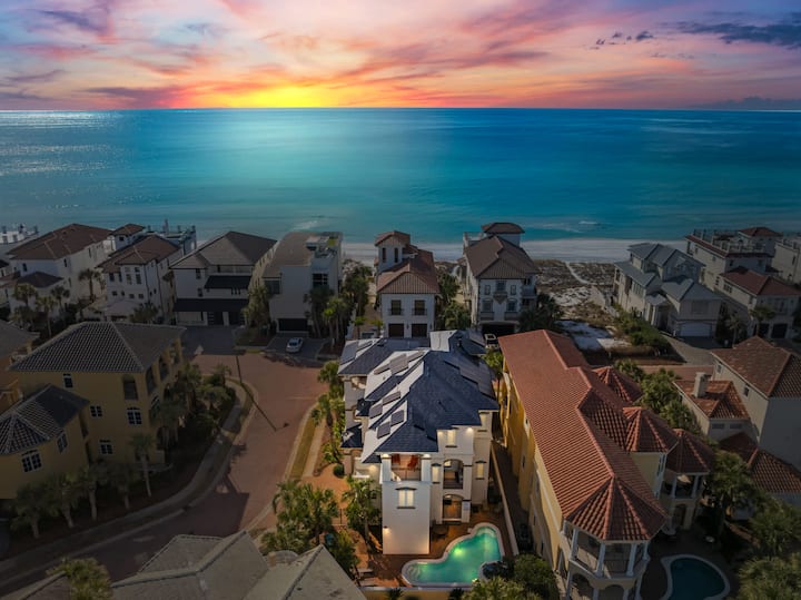 Добре дошли в Coastal Castle - изключително луксозно ваканционно жилище под наем, разположено в ексклузивната общност от затворен тип Destiny By The Sea в Дестин, Флорида. Този 3 - етажен дом с 5 спални и 5,5 бани предлага 4500 квадратни метра красиво проектирано жилищно пространство, което го прави идеалният избор за семейства или групи. Наскоро реновиран отвътре и отвън, този дом съчетава модерна елегантност с обмислена функционалност. От момента, в който пристигнете, ще бъдете очаровани от първокласното местоположение на ъгъла на дома, предлагащо по - добро уединение и зашеметяваща гледка към залива от всяко ниво.