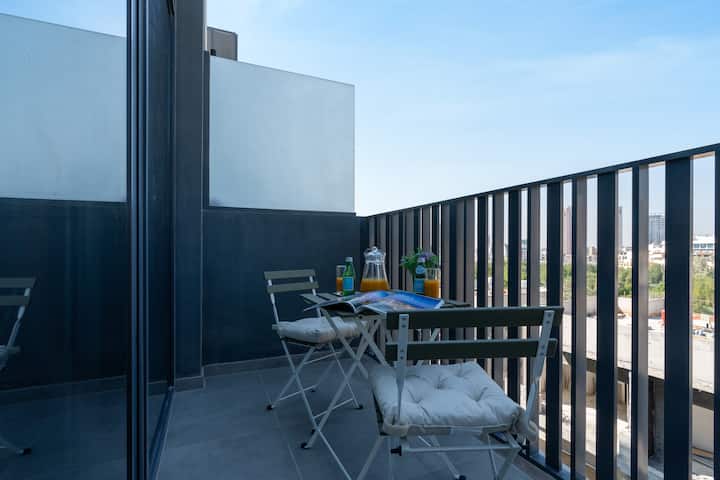 Насладете се на олицетворението на модерния живот в този шикозен студио апартамент. Независимо дали се наслаждавате на храната в трапезарията, излежавате се на двойното легло или си наваксвате с любимите си предавания на впечатляващия 4K телевизор, ще намерите комфорт и удобство на всеки ъгъл.