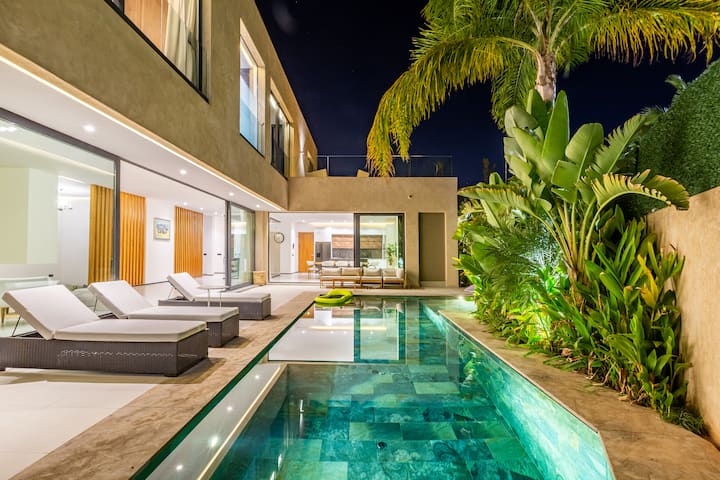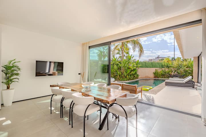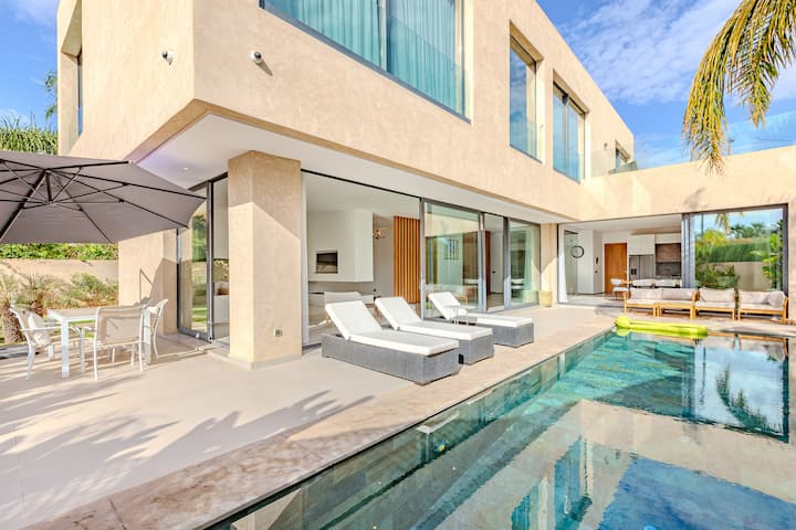 Идеално за гости, които търсят спокойствие, комфорт и бягство. Тази просторна вила, идеална за почивка от висок клас, съчетава съвременен дизайн и марокански щрихи.