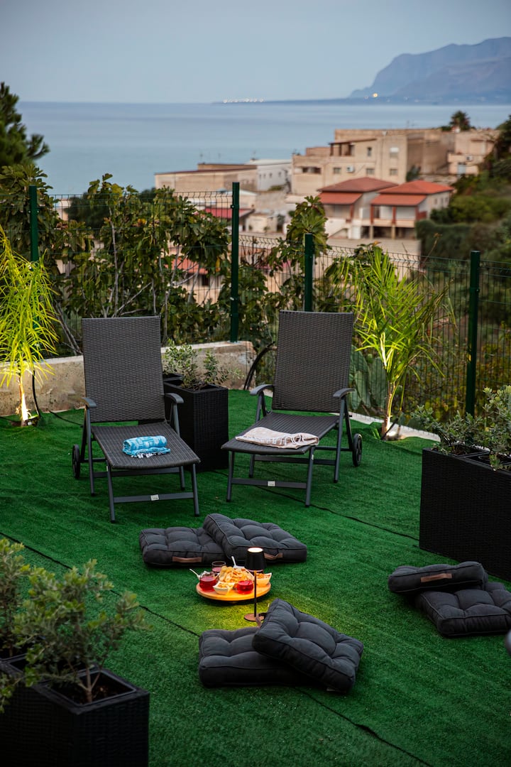Апартамент, разположен в центъра на Алкамо Марина, с изглед към морето над целия залив. Апартаментът е на 600 метра пеша от морето, независим е с веранда и тераса.