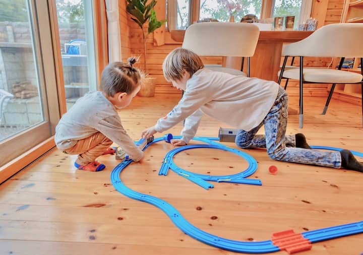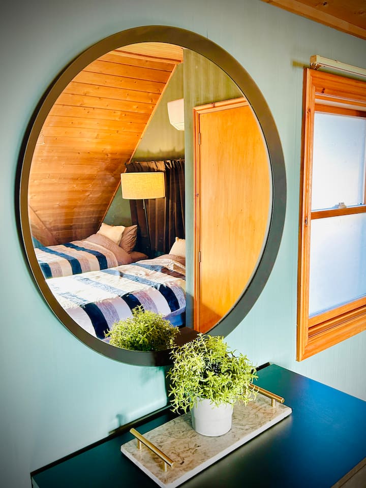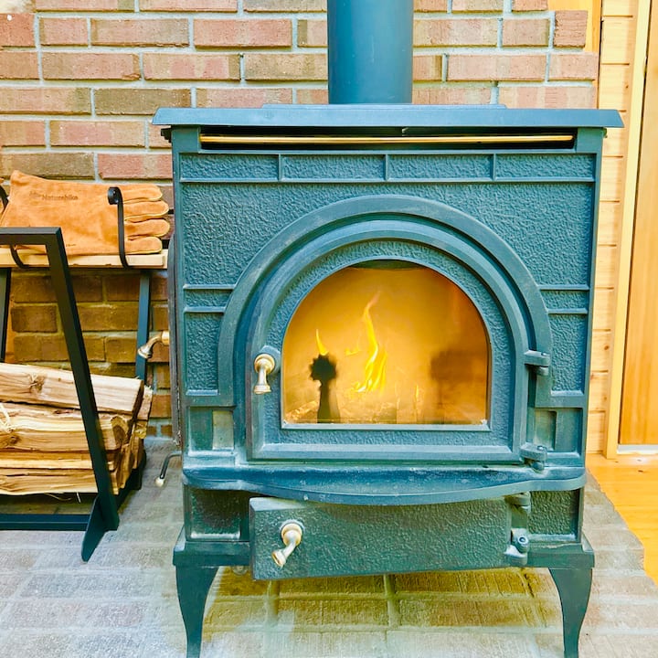 Самостоятелна дървена колиба с печка на дърва, домашно кино, игри