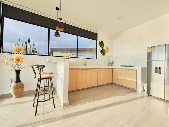 Имотът е напълно оборудван, където всеки елемент е на ваше разположение, за да направи престоя ви уникално изживяване. Най - добрите залези в краката ви и много зелени площи, които ще ви накарат да се насладите на почивката си, както никога преди.