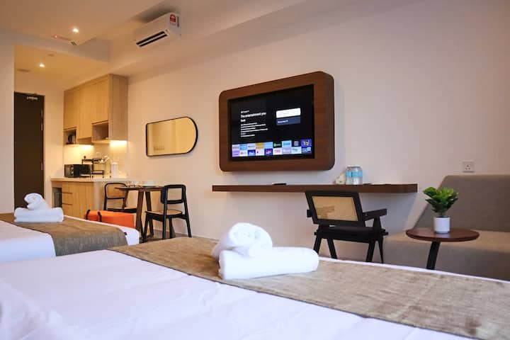 【SB106 Студио в】 хотелски стил с 2 суперголеми двойни легла | Градска зона