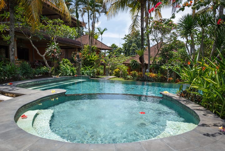 Здравейте, скъпи! Казвам се Маде. Аз съм професионален екскурзовод и сега отворих Airbnb в красивата си къща за гости, разположена само на 2 минути пеша от централната улица Ханоман, така че ще получите перфектно местоположение и тих хотел с изглед към тропическа градина и оризища. Закуската струва само 2 USD. Останете на място, което е близо до всичко, което искате да посетите. Само на 5 минути пеша до гората на маймуните, двореца Убуд Кинг, супермаркет Коко, Йога Барн
