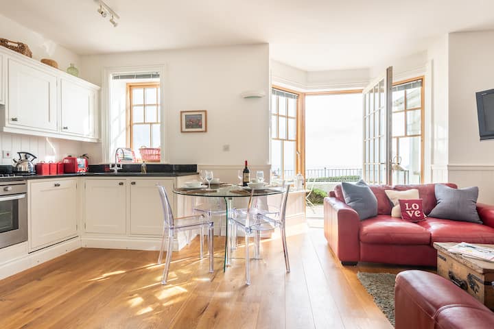 2 Prospect House е красив апартамент на приземния етаж с 2 спални в стил Ню Инглънд в всепризната сграда, кацнала на изключително място на скалите над Старт Бей.